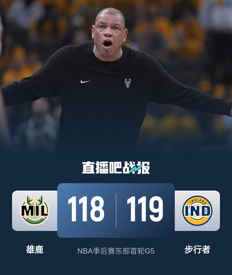 4月30日讯 NBA季后赛首轮G5,步行者主场迎战雄鹿。前4场比赛,步行者已经3-1拿到赛点,上一场比赛利拉德还大伤离场,本场雄鹿已经没有退路。