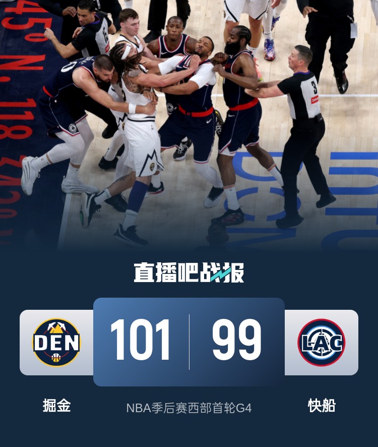 4月27日讯 NBA季后赛今日继续开打,快船坐镇主场迎来和掘金的G4之战,快船上一场回到主场后再胜一场,目前总比分上2-1取得领先。
