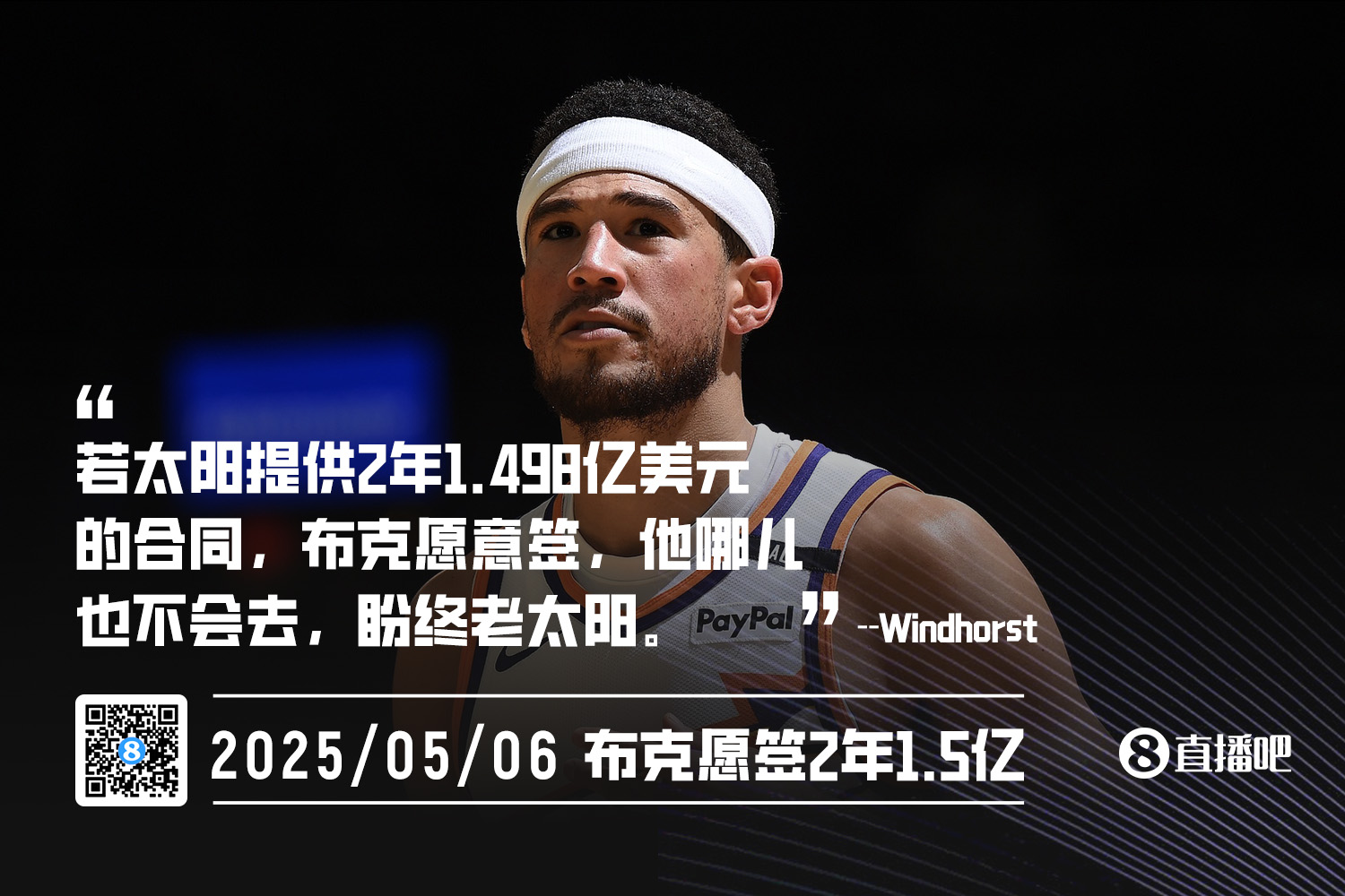 Brian Windhorst此前曾报道称,多位消息人士表示,太阳预计会给布克提供2年1.498亿美元的顶薪合同。