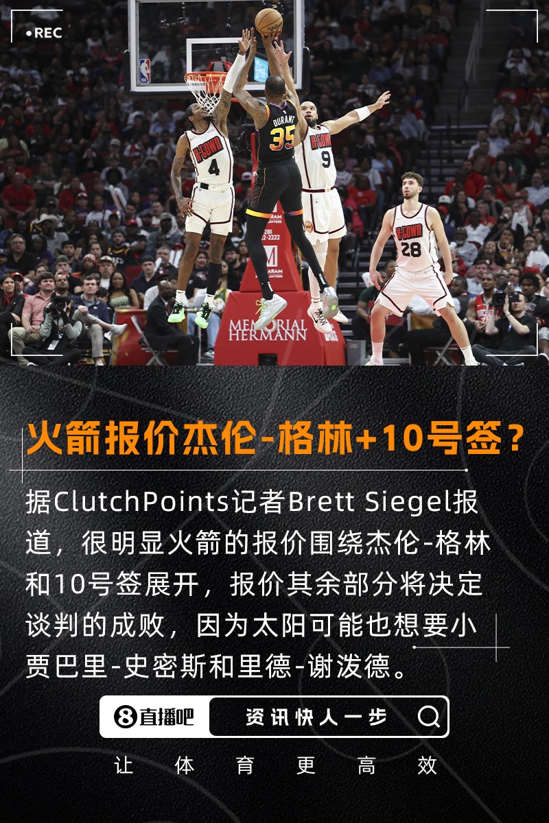 来自ClutchPoints记者Brett Siegel的消息,虽然他和Kelly Iko(The Athletic火箭记者)尚未做出确切确认,但很明显火箭的报价围绕杰伦-格林和今年10号签(来自太阳)展开,报价的其余部分将决定谈判的成败,因为太阳可能也想要小贾巴里-史密斯和里德-谢泼德。