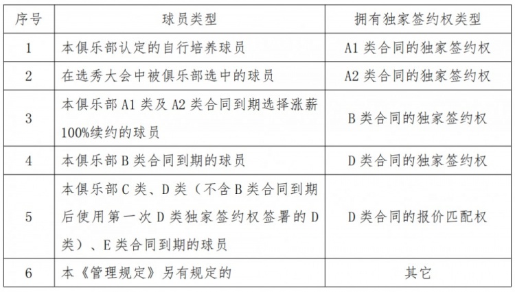 1、以俱乐部自行培养身份进入联盟的球员,球队拥有A1类合同(新秀合同)独家签约权。
