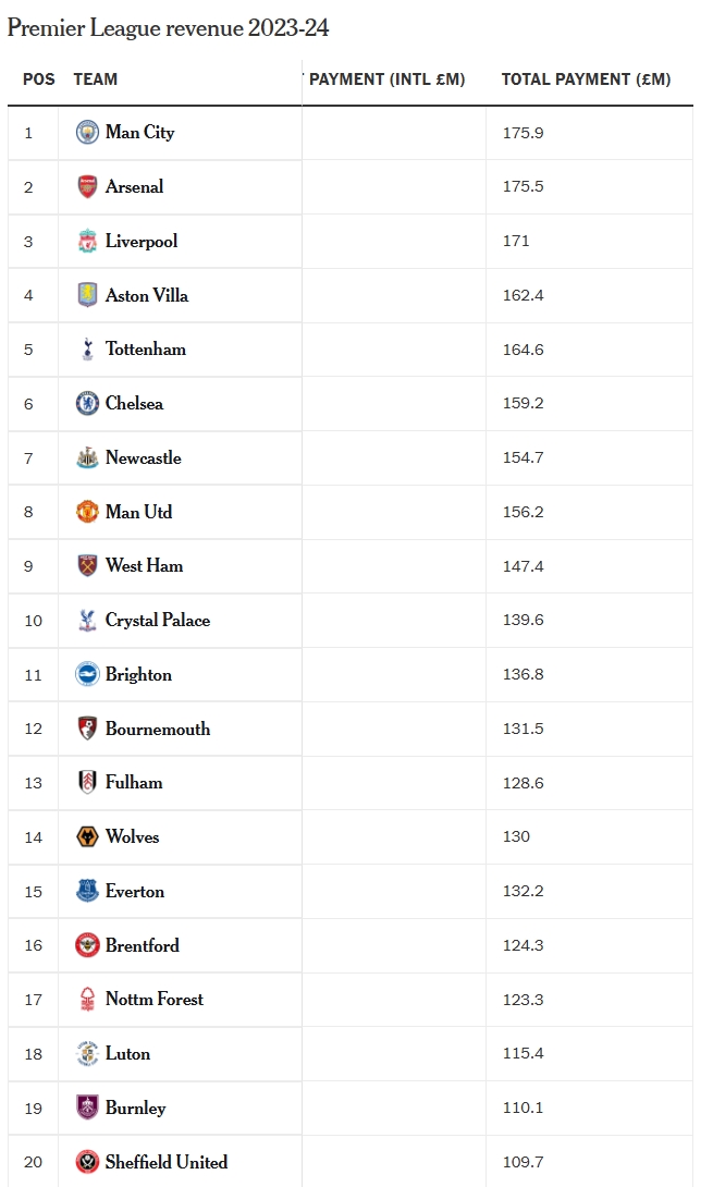 随着英超转播合约价值的持续攀升,绩效奖金水涨船高。上赛季曼城在中央分配金与设施费用之外,通过绩效奖金额外获得5640万英镑,使其赛季总分成达到1.759亿英镑。