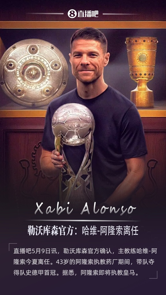 05月09日讯 官方消息,勒沃库森主帅阿隆索今夏离任,他带领球队近三个赛季夺得三个冠军。阿隆索与勒沃库森官方共同宣布了这一消息。